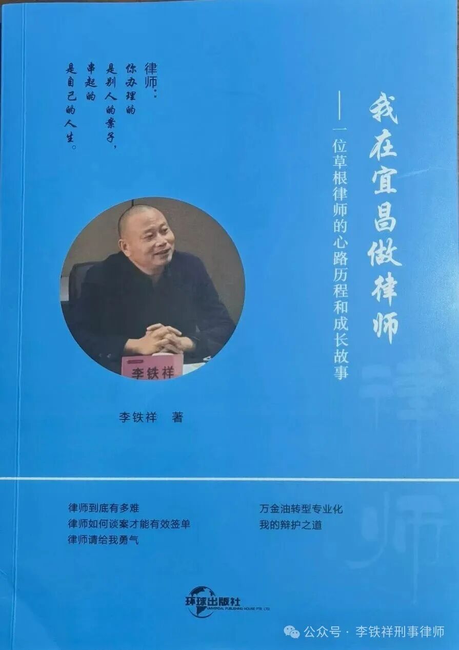 我与吉娟律师,因书结识,还要感谢互联网,感谢微信群! 2024 年,我集20年律师的执业过程,将在公众号上文章汇集整理编辑成书,《我在宜昌做律师——一个草根律师的心路历程和成长故事》,委托图书出版公司代理,由新加坡环球出版社出版。