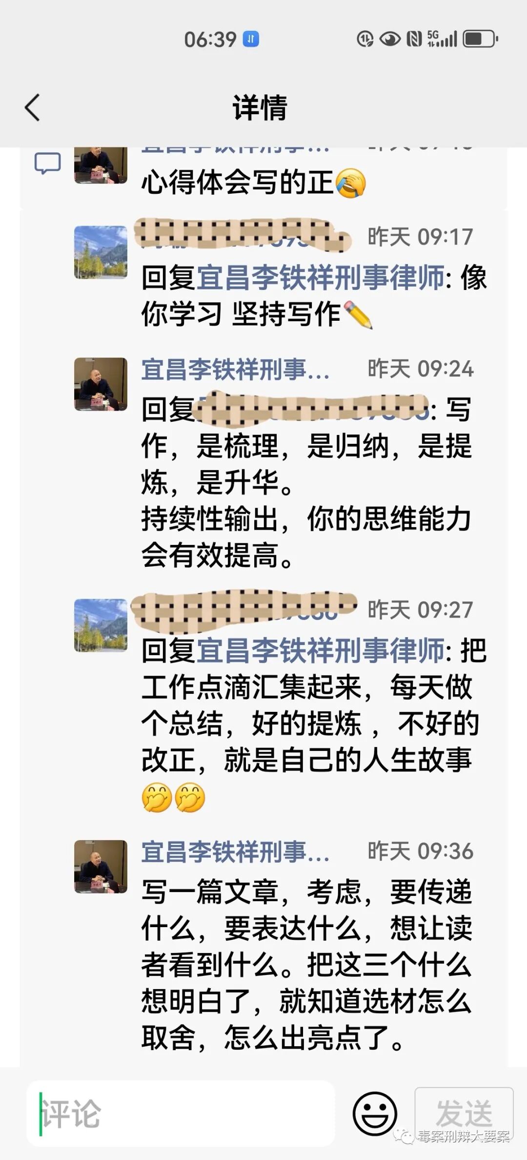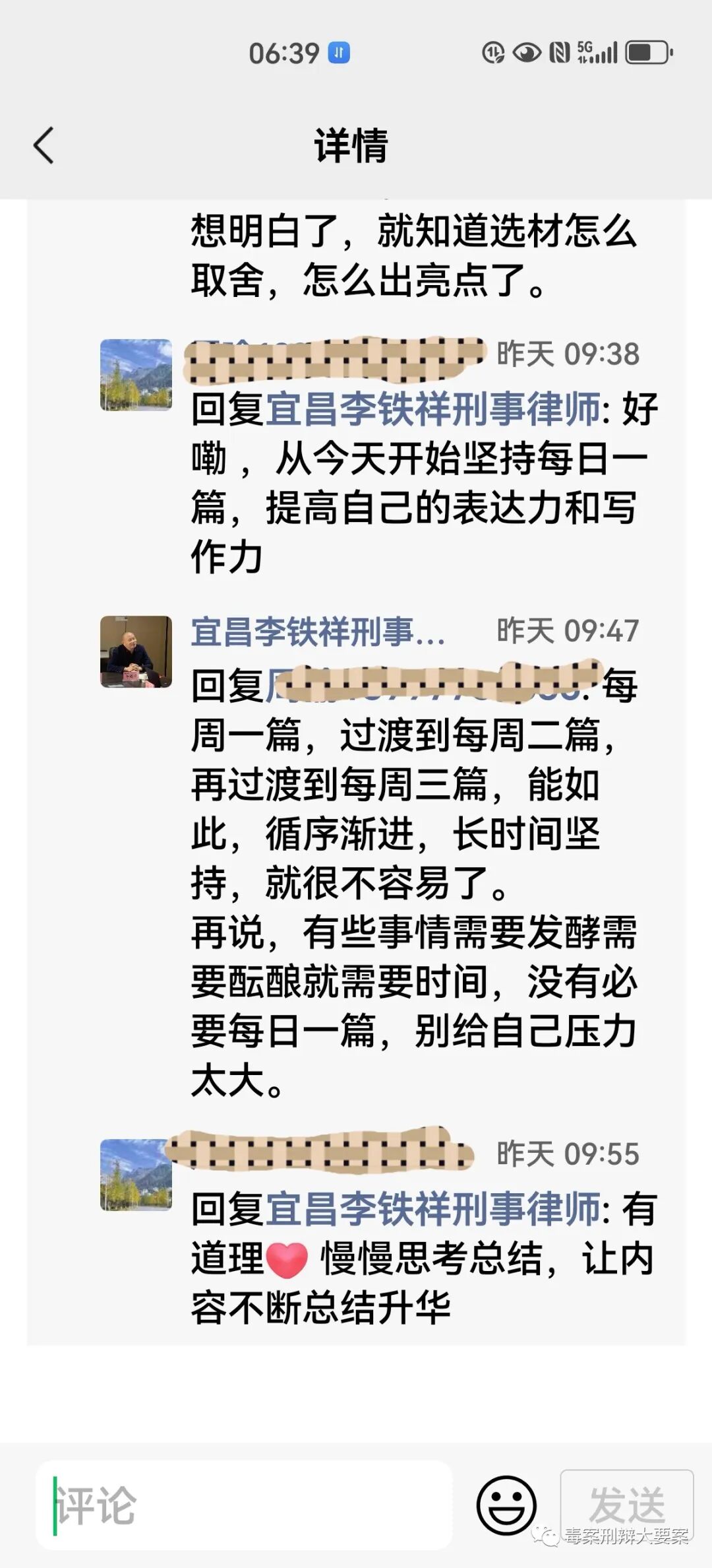 下面截图是李律师与一位微友的对话: